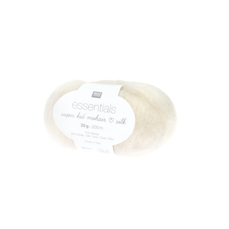 Le fil Essentials Super Kid Mohair Loves Silk de Rico Design est un mélange de mohair Super Kid et de soie de haute qualité, caractérisé par sa texture exceptionnellement douce. Sa teneur en soie (30 %) le rend incroyablement léger. Parfait pour les châles et écharpes délicats !
