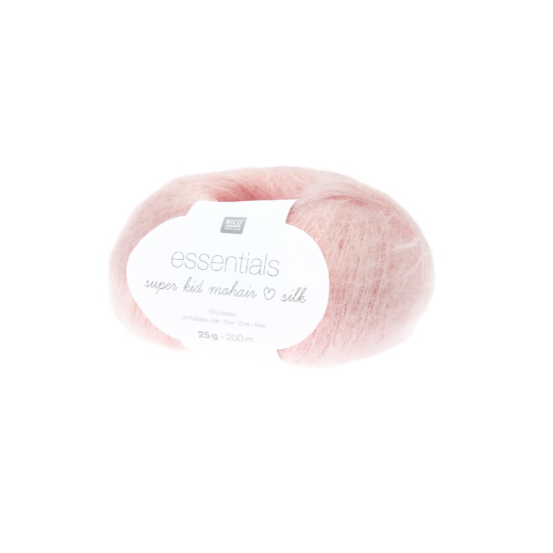 Le fil Essentials Super Kid Mohair Loves Silk de Rico Design est un mélange de mohair Super Kid et de soie de haute qualité, caractérisé par sa texture exceptionnellement douce. Sa teneur en soie (30 %) le rend incroyablement léger. Parfait pour les châles et écharpes délicats !