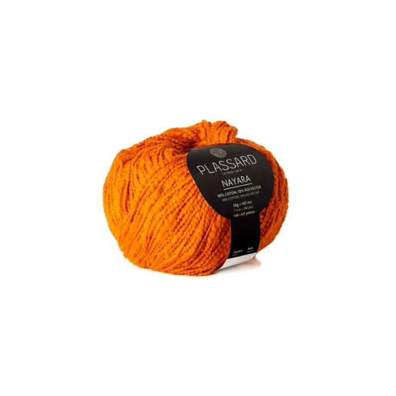 Le fil Nayara de Plassard est un fil guipé, composé de 90% de coton et de 10 % de polyester, et proposé dans une palette de 7 couleurs de la plus sobre à la plus pétillante.