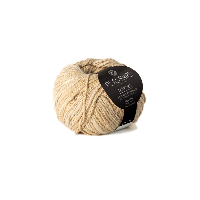Le fil Nayara de Plassard est un fil guipé, composé de 90% de coton et de 10 % de polyester, et proposé dans une palette de 7 couleurs de la plus sobre à la plus pétillante.