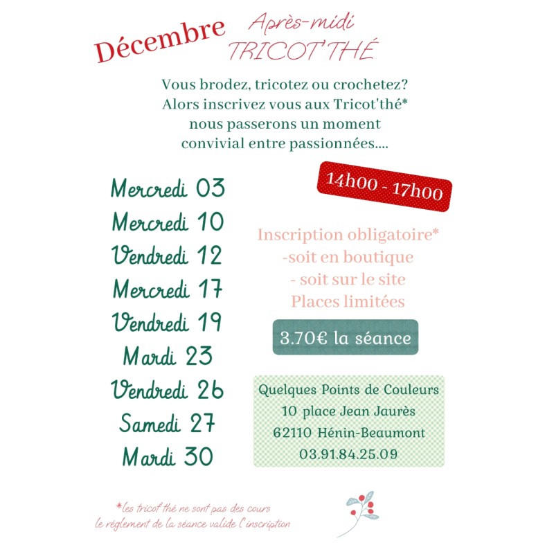 Vous voulez passez un moment convivial avec des passionnées ? Alors venez avec votre ouvrage de tricot, crochet ou broderie !