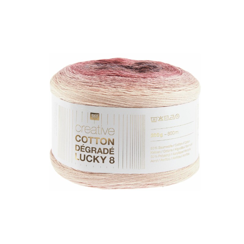 Chaque pelote de Créative Cotton dégradé Lucky 8 contient 8 couleurs, qui tricotées, donnent de magnifiques dégradés de couleurs.