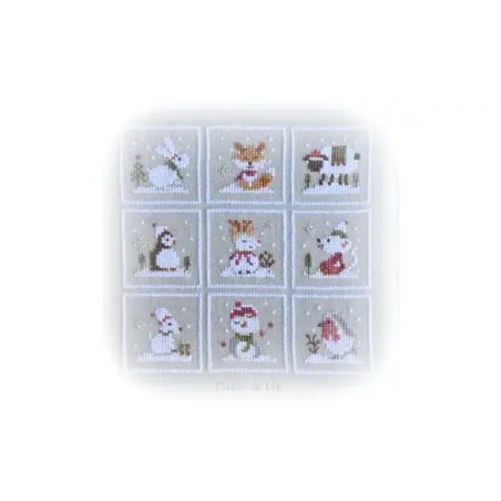 chaque petits carrés seuls fait 28 x 28 points, libre à vous de les broder séparément ou alignés sur un même tableau.