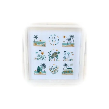 Fils DMC préconisés : 3766, 928, 926, 924, 3848, 3847, 677, 782, 3790, 3033, b5200