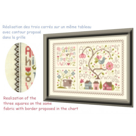 | - sur une toile 10 fils/cm sur 2 fils (25 ct) | : | 26,4 x 24,6 cm | ou | 10 3/8 " x 9 3/4 " |