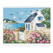La toile détaillée représente un petit coin breton à broder au demi point vendu sans les fils.