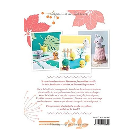 Le livre « Adorables Mini Animaux » de Marie Clesse, également connue sous le nom de So Croch', est un guide de crochet qui vous invite à créer de charmants petits animaux en amigurumi. Voici un résumé des points clés :