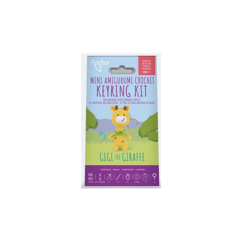 Le kit comprend les instructions, les fils de coton, une aiguille à laine, 1 crochet 2.5, un marqueur de maille, du rembourrage, le porte clé.