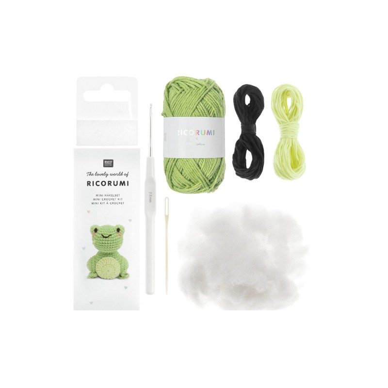 Crochetez cette adorable grenouille grâce à ce kit comprenant les instructions, les fils nécessaires à la réalisation du projet, de la ouate de rembourrage, un crochet et une aiguille