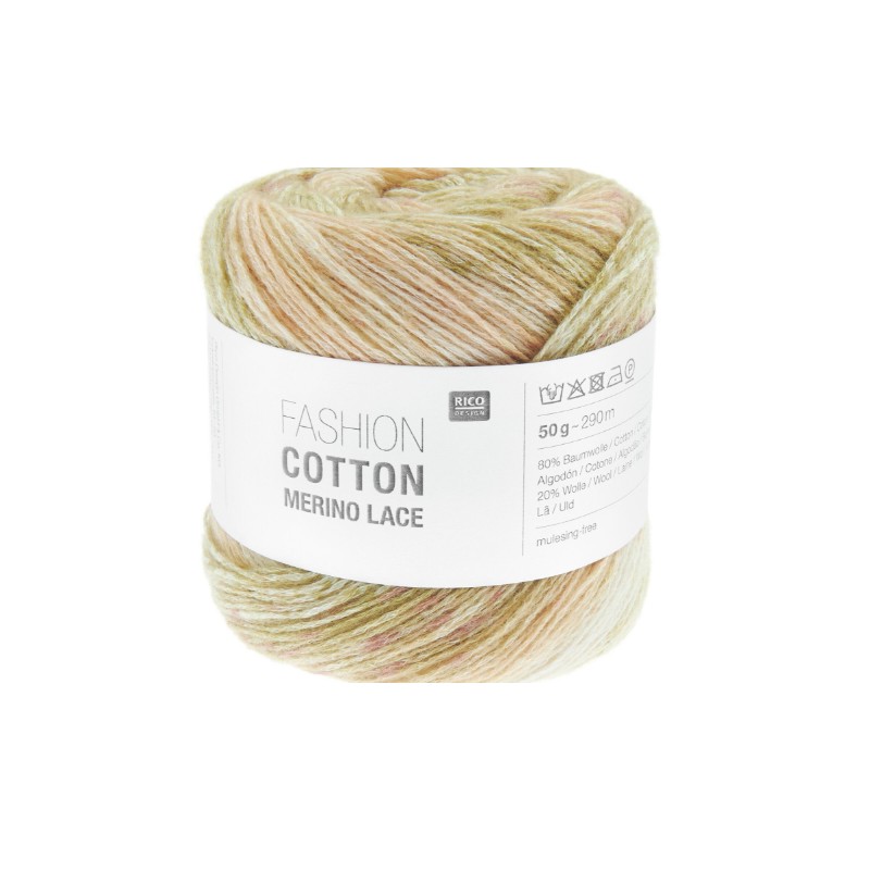 La qualité Fashion Cotton Merino Lace est un fil 100 % naturel car composé de 80 % de coton et de 20 % de laine.