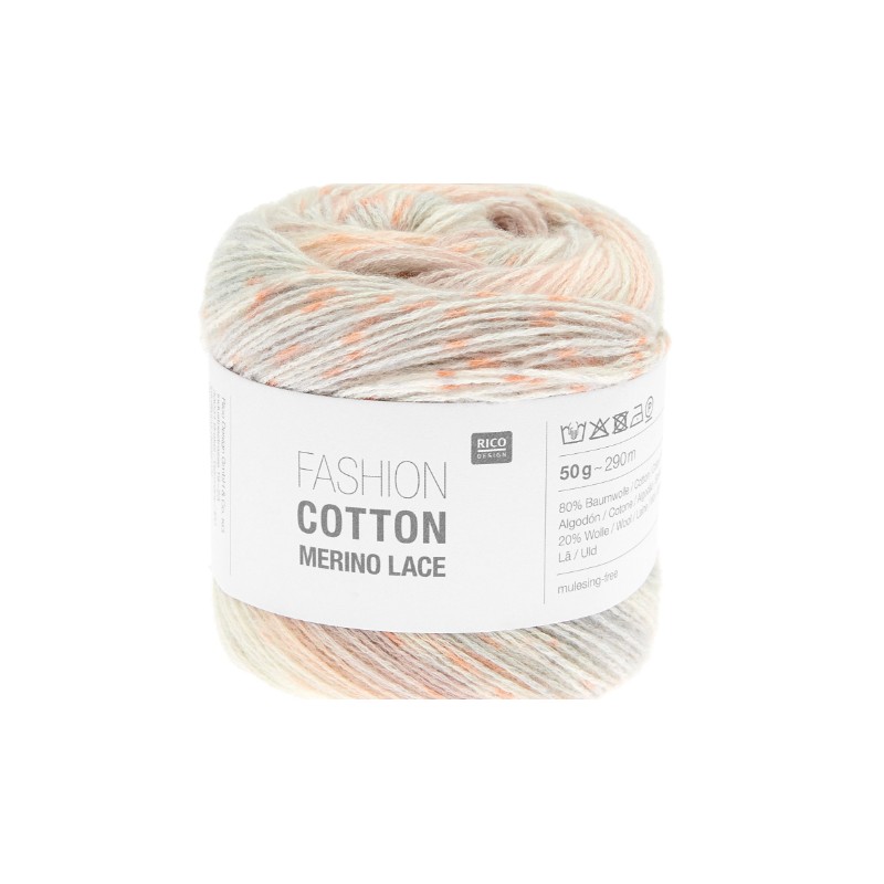 La qualité Fashion Cotton Merino Lace est un fil 100 % naturel car composé de 80 % de coton et de 20 % de laine.